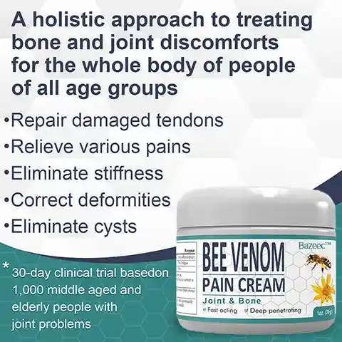 I am happy to share my experience with using Bee Venom Pain and Bone Healing Cream to treat my arthritis. I used to suffer from a condition called rheumatoid arthritis, which made my joints feel stiff and painful, affecting my daily life and work. I had tried various different treatments, including medication and physical therapy, but with little success. That's when I heard about Bee Venom Pain and Bone Healing Cream and decided to give it a try.