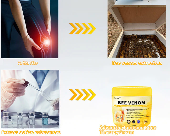 Bee Venom Advanced Joint and Bone Therapy Cream contains six proven, powerful ingredients that have been used to effectively treat arthritis and bone-related conditions in millions of people around the world.