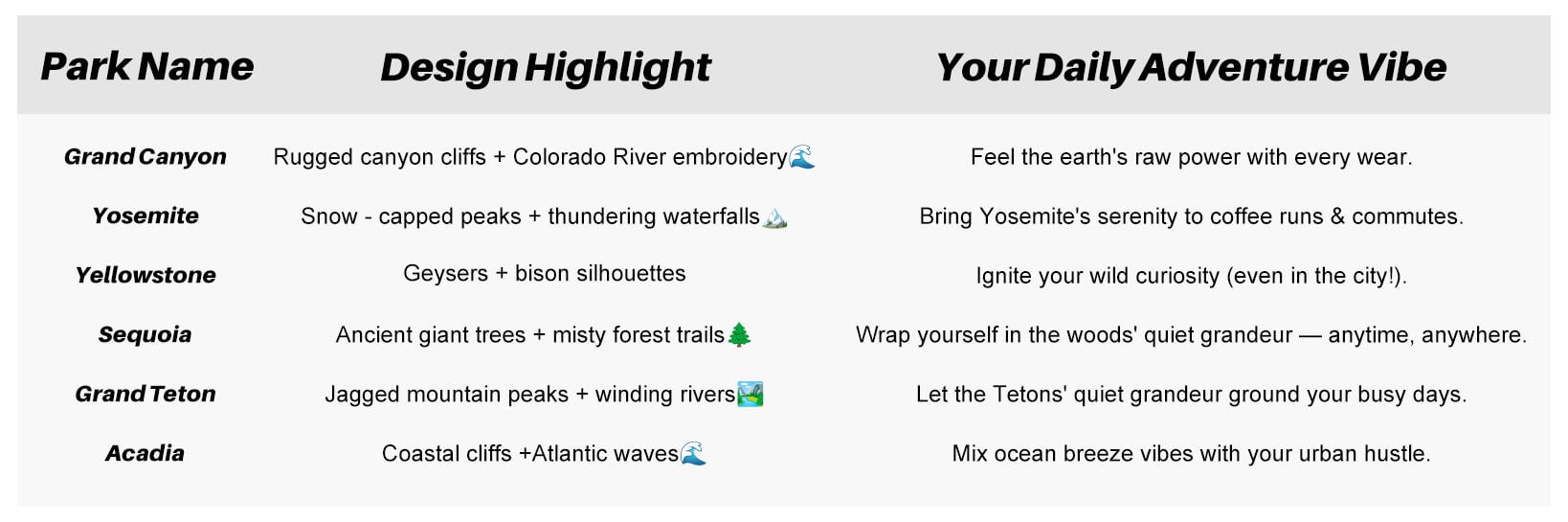 - Anyone who wants to wear their love for America’s landscapes with pride 🇺🇸.